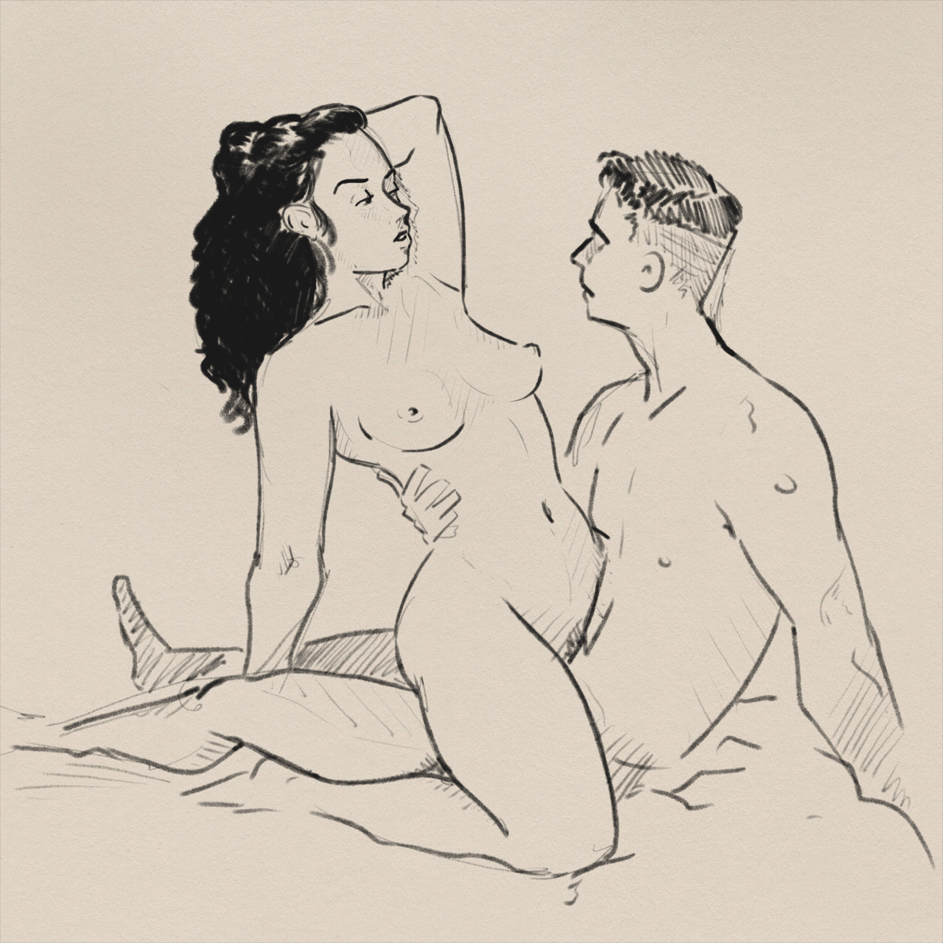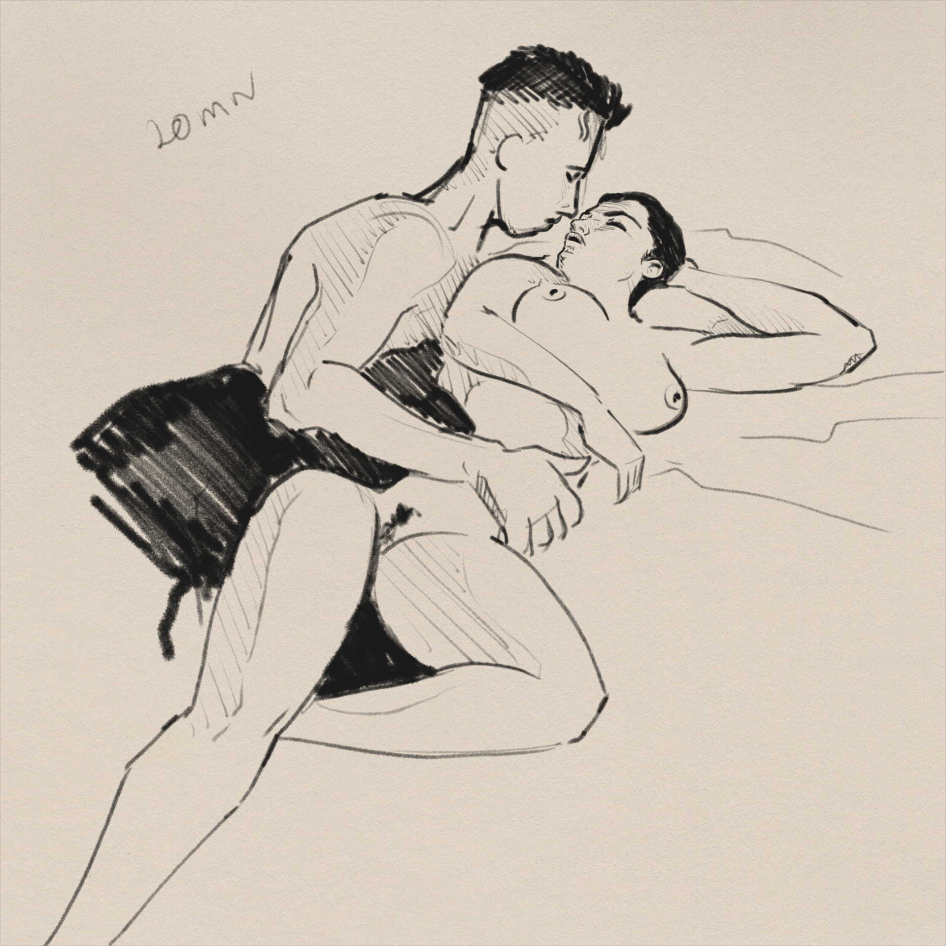 Digital drawing from “The Lovers” featuring models Rebecca Teale and Aleksander Kamberov